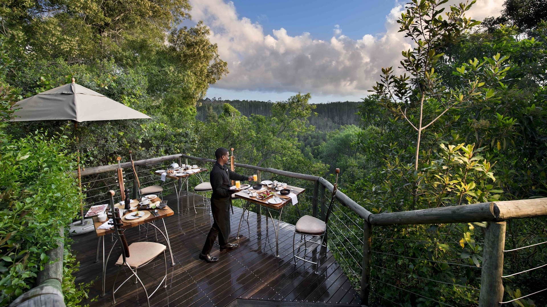 Surrounded by the Tsitsikamma Mountain Range, the gracious Hunter’s Country House is situated on the famed Garden Route. Family-owned and run, the elegant boutique hotel offers stand-alone thatched suites with ensuite bathrooms, air conditioning, personal bars, televisions, fireplaces, and private patios that boast spectacular forest views. Several of the suites have private plunge pools, while the Master Suite has its own swimming pool and a private outdoor entertainment area.