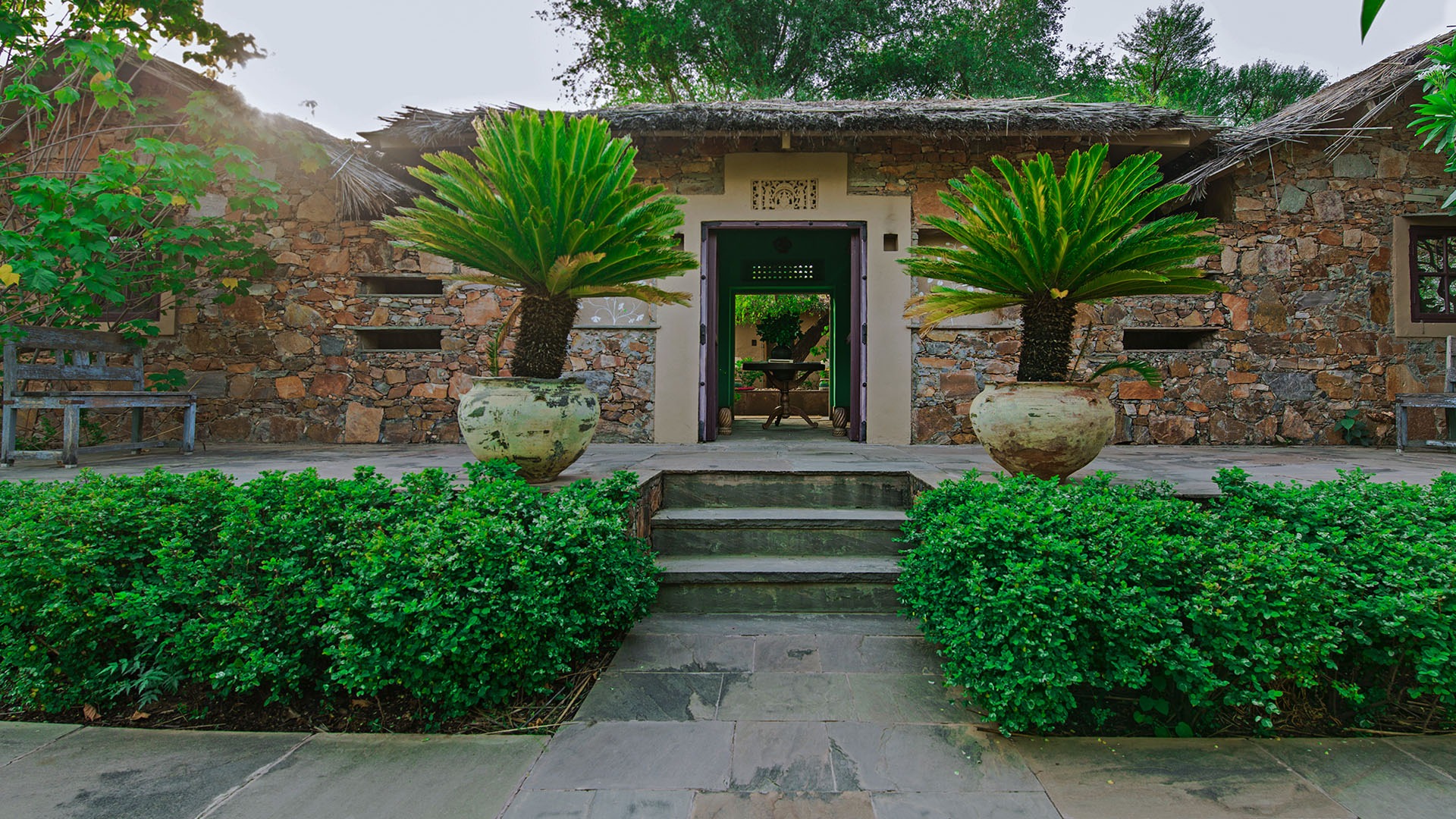 Tucked in the fold of lush green hills, Anopura, just an hour from Jaipur, is a tranquil hideaway. Charming accommodation includes four individual suites, two in the main villa and two separate cottages with views over the large pool and Tabari, an outdoor living room built in the local thatched style. Each room has its own outdoor terrace with views across the gardens. The Pravas private villa is entirely separate and sits in its own colourful garden with a stunning square swimming pool and Tabari (outdoor living room). The Villa has two en-suite bedrooms, private courtyard its own indoor sitting room.