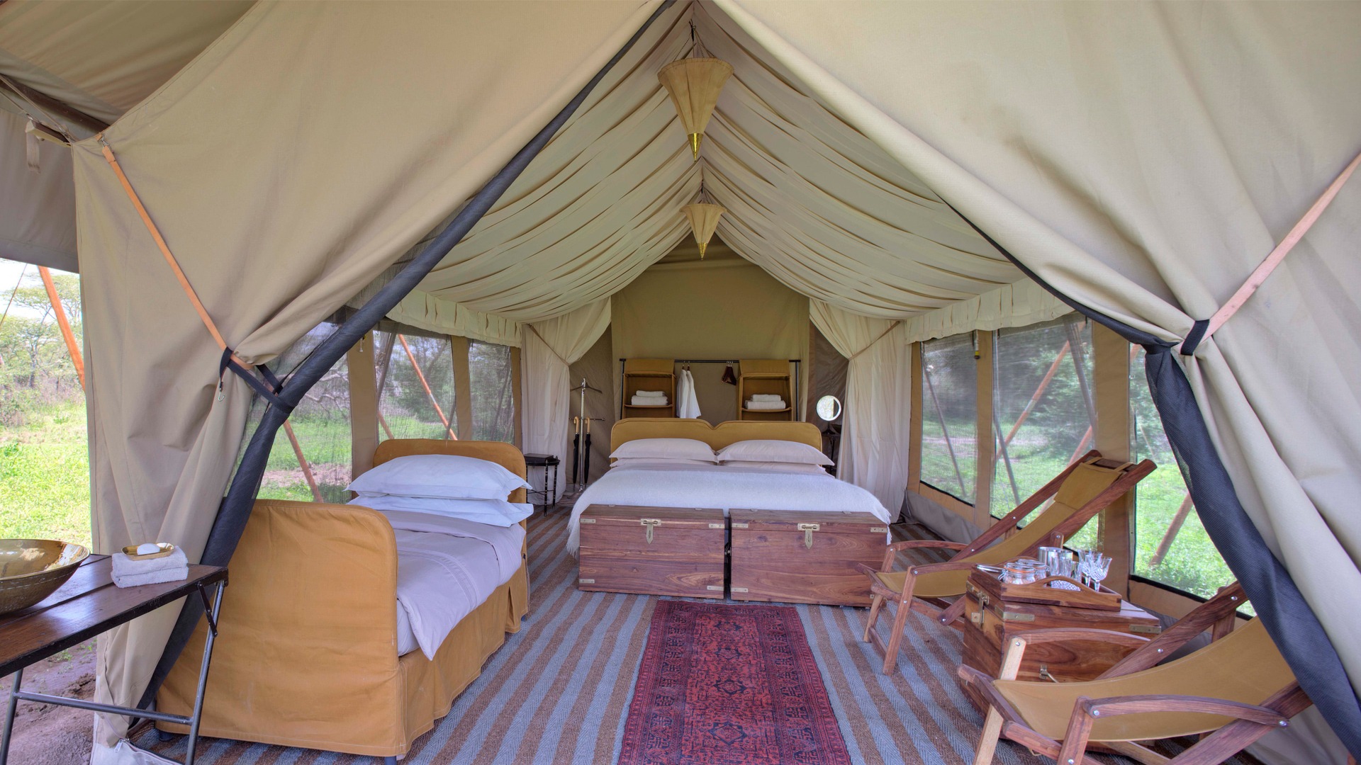 The camp lends itself to family travel in the form of two spacious Safari Tents with inter-leading passage that make up a Family Tent. Each tent has its own ensuite bathroom and a private veranda and seating area. The Family Tent can accommodate a maximum of two adults and two children (three children can be provided for on request).