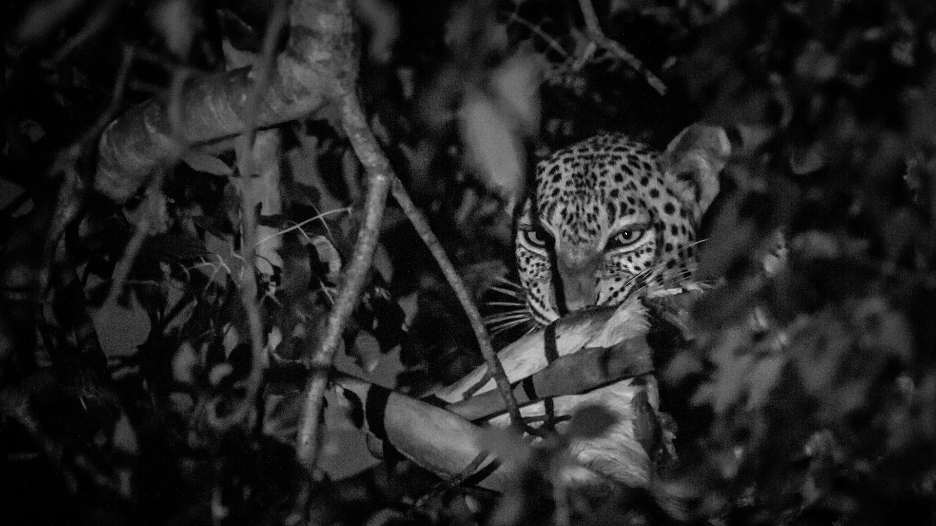 We tracked this young male leopard after another ranger spotted an nyala carcass nearby. He seemed nervous at first but soon relaxed, gave us an inquisitive look and then wandered off for a drink.