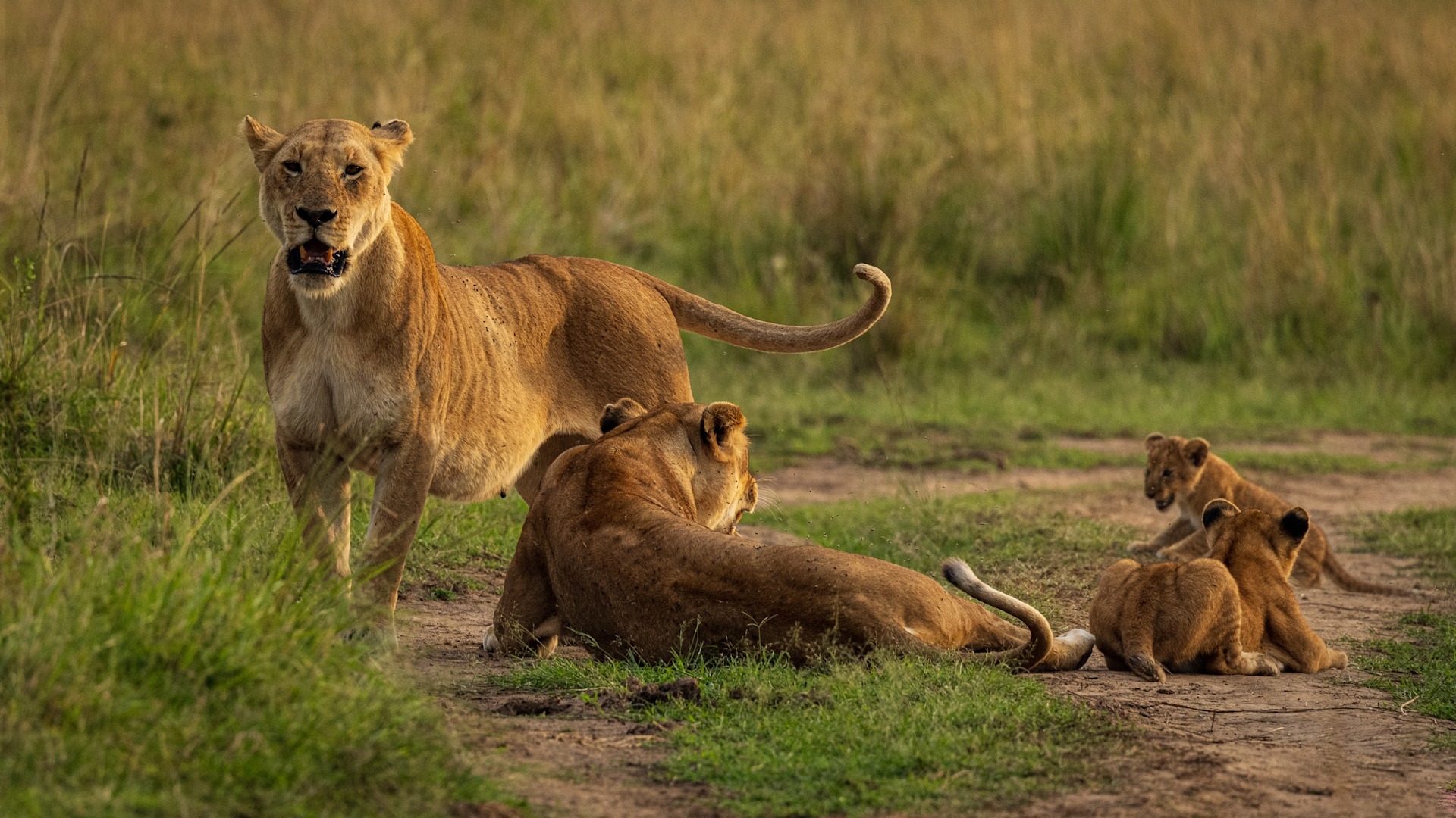This pride of lions was moving through the savannah when we found them. They stopped for a drink, climbed a termite mound, and then later proceded with full-blown playtime on a convenient log.