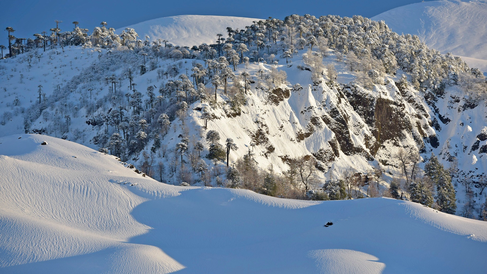Begin with a winter ascent in Sierra Baguales before transferring north via Puerto Natales and Puerto Montt. A charter flight across the Andes offers a rare aerial study of Chile’s winter geography – glaciers, forest and volcanic cones seen from above.
