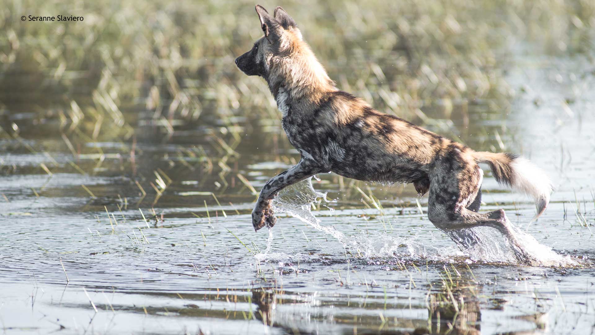 After what felt like an eternity the isolated wild dog touched down on the other side of the river and was given a hero’s welcome by the rest of the pack who gathered around him calling and rubbing up against him in a dizzying display of euphoria.